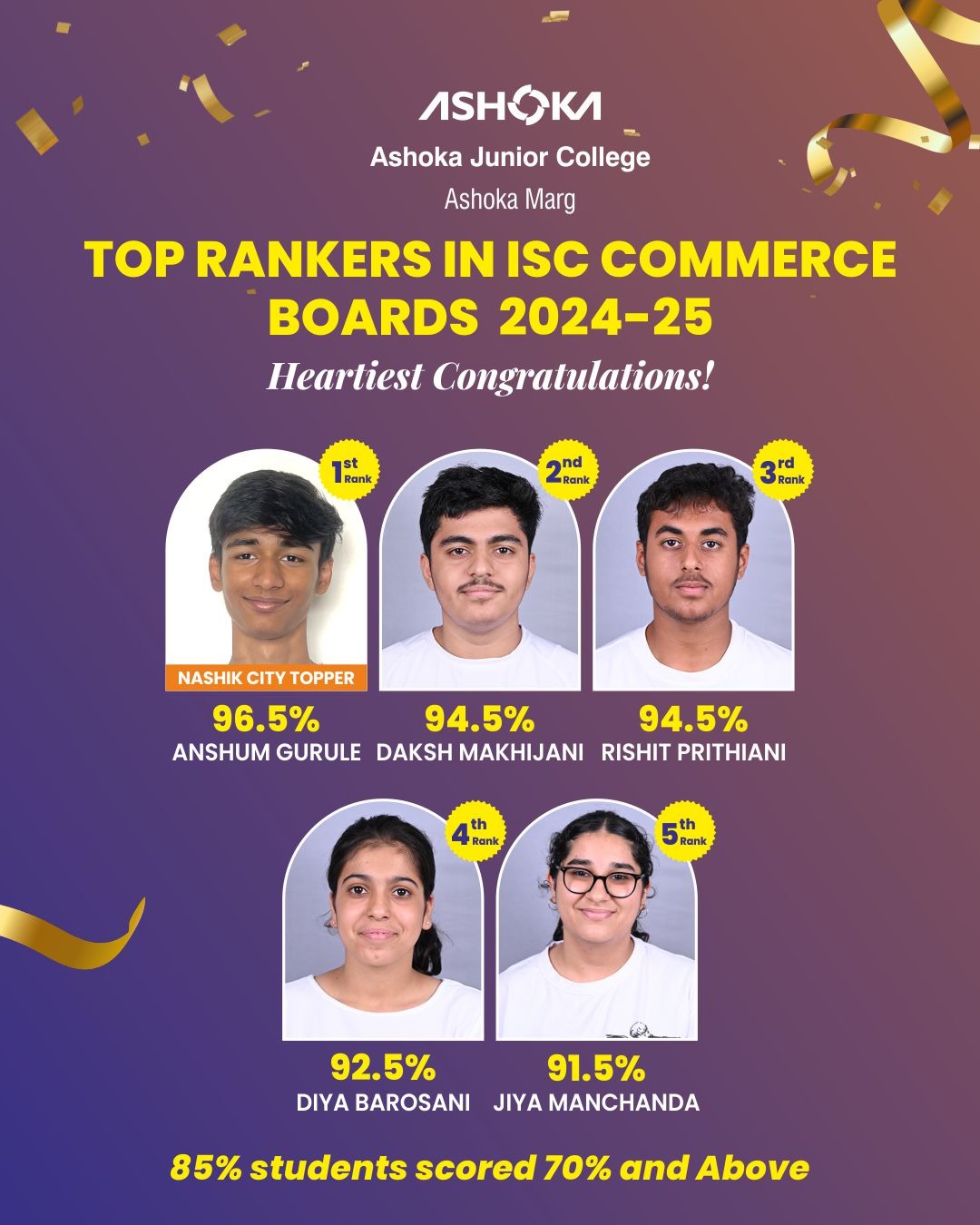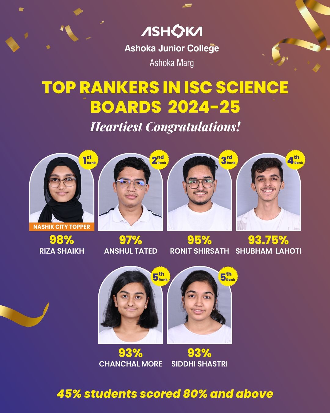 | 23 | AMOLIKA ARIHANT VALSANGKAR | 9 | 34 | 80 | National Achiever (Top100) |