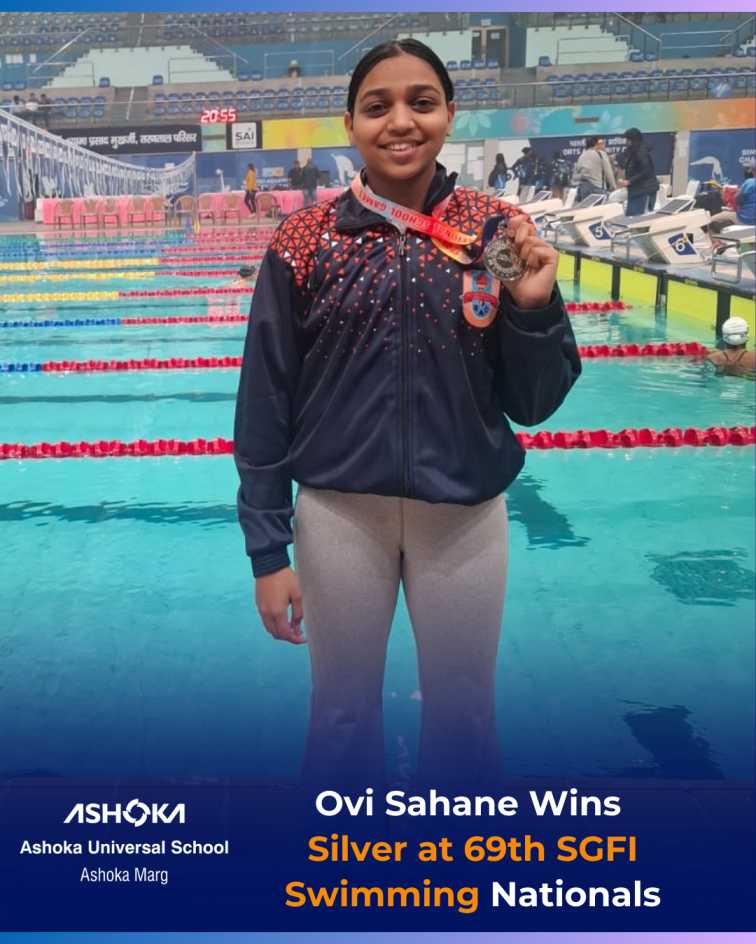 Heartiest congratulations to Ovi Sahane (Grade 10 | U-19 Girls) for securing a Silver Medal in the 4×100m Medley Relay at the 69th SGFI National Swimming Championship, held in Delhi 🇮🇳✨