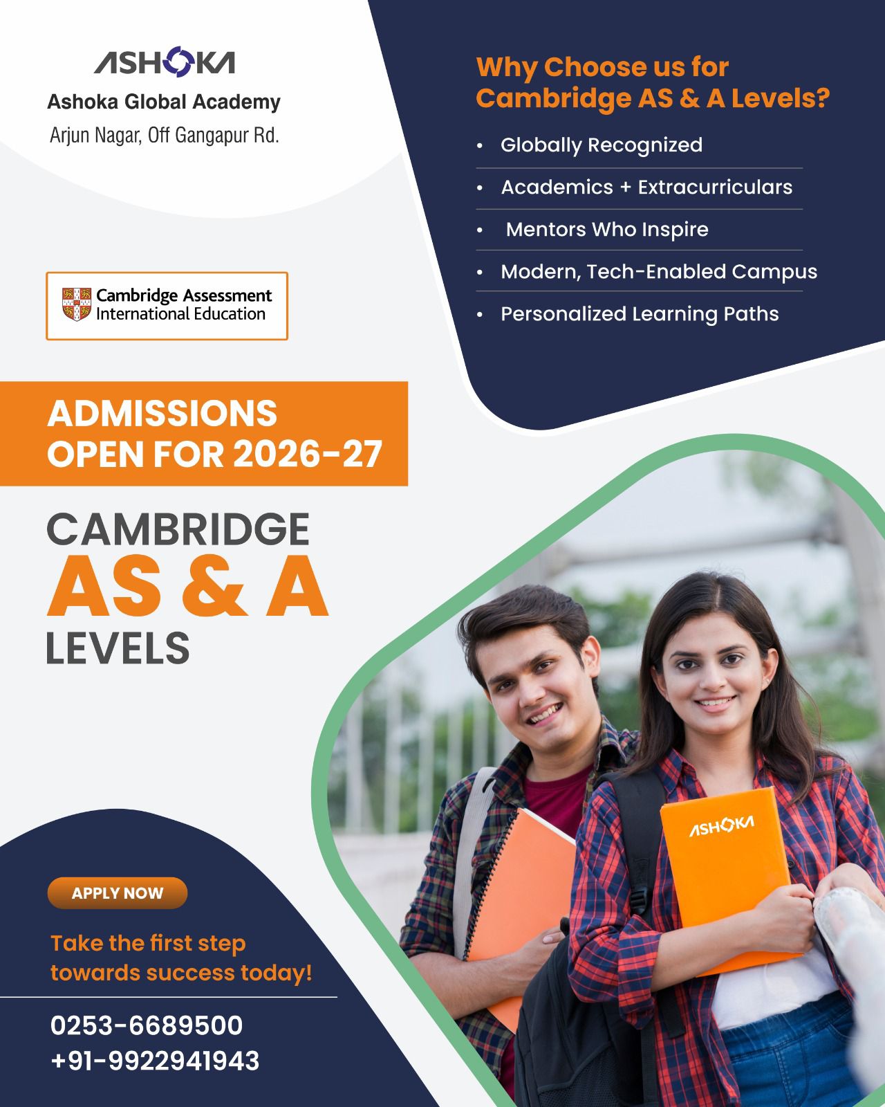 Admissions Open for Cambridge AS & A Levels 2026–27 at Ashoka Global Academy.